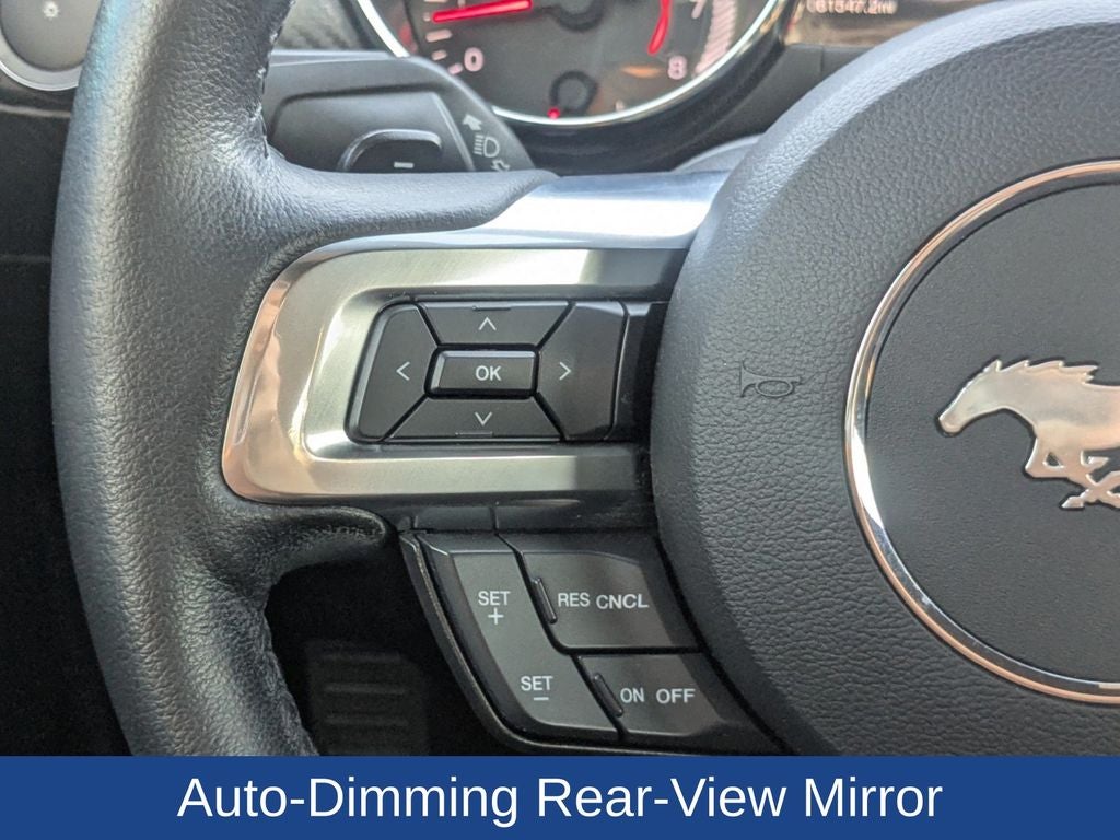 Convenience and safety features include cruise control for relaxed highway driving and the Enhanced Security Package with an active anti-theft system, adding peace of mind when parked. HID headlamps improve nighttime visibility while sharpening the Mustang’s aggressive front-end appearance.