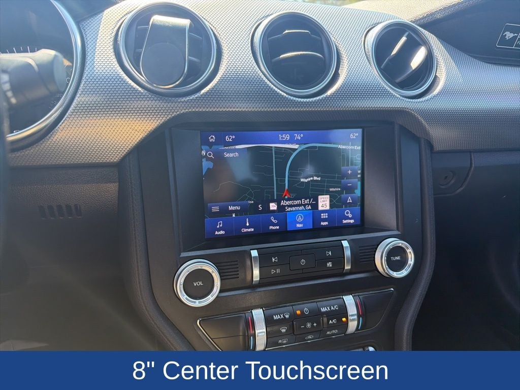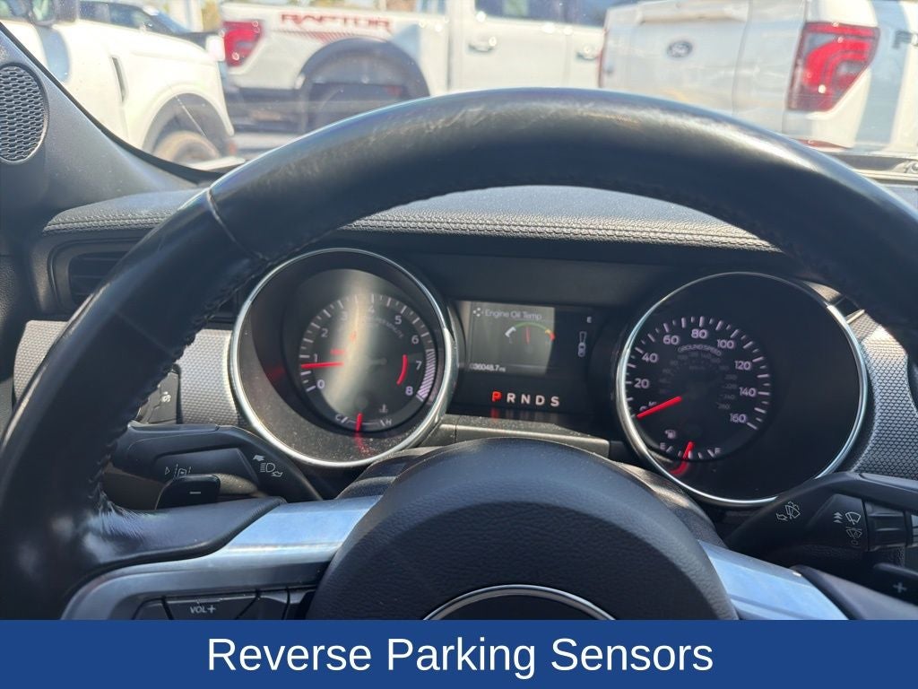 Equipped with the Ford Safe & Smart Package, this Mustang includes adaptive cruise control to enhance highway driving, blending performance with added peace of mind.
