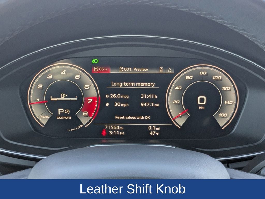 Inside, the cabin is thoughtfully equipped with heated leather front seats, a heated steering wheel with hands-on detection, and driver seat memory, creating a comfortable and personalized driving environment. The Audi Virtual Cockpit puts key information front and center, while factory-added navigation ensures intuitive route guidance on every trip. Adaptive cruise control enhances confidence on the highway, and the top view camera system provides added visibility when maneuvering in tight spaces.