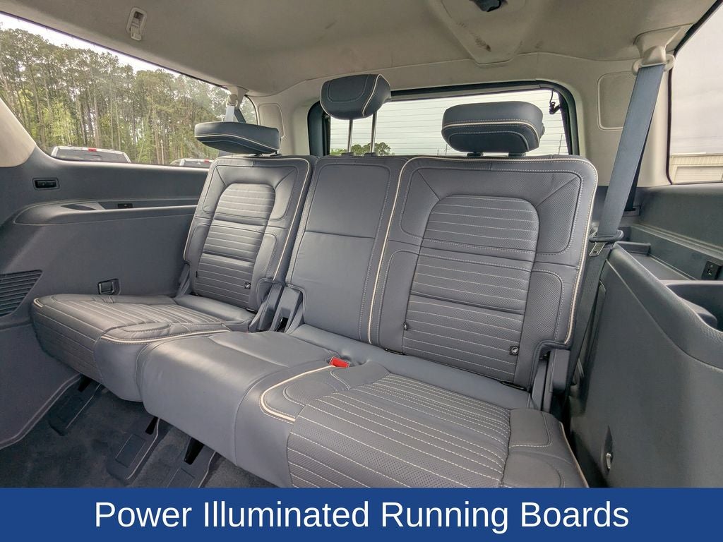 30-Way Power Heated/Cooled Leather Front Seats w/Perfect Positioning, Heated 2nd Row Captain's Chairs, Powerfold 3rd Row Seat, Panoramic Moonroof/Sunroof, Navigation/Nav/GPS, 360-Degree Camera, Enhanced Active Park Assist, Adaptive Cruise Control, Lane Keep Assist, Blind Spot Information System, Pre-Collision Assist with Automatic Emergency Braking, Wireless Charging Pad, Power Adjustable Head Rests, 172 Point Inspection completed by our Factory Certified & ASC Trained Technicians, Recent Oil Change, Vehicle Detailed, Yacht Club Theme, Revel Ultima Audio System w/20 Speakers & Memory, Head-Up Display, Phone As A Key, Adaptive Suspension, Power Illuminated Running Boards, Hands-Free Power Liftgate, Adaptive LED Headlamps w/Signature Lighting, Illuminated Lincoln Star, AutoFold Power Heated Side Mirrors w/Memory & Approach Lamps, 22 21-Spoke Bright Machined Aluminum Wheels, Heated Leather Steering Wheel w/Paddle Shifters, Tri-Zone Automatic Climate Control w/HVAC Memory, 10 Centerstack Touchscreen & 12 Digital Instrument Panel, Premium Ambient Interior Lighting, Chrome Roof Rack w/Black Cross Bars, Sand Dinamica Suede Headliner, Auto Tilt-Away Steering Wheel, Auto-Dimming Rear-View Mirror, Equipment Group 800A Black Label, Garage Door Transmitter, Rain Sensing Wipers, Steering Wheel Memory, SYNC 3 Communications & Entertainment System, Voice-Activated Touchscreen Navigation System.